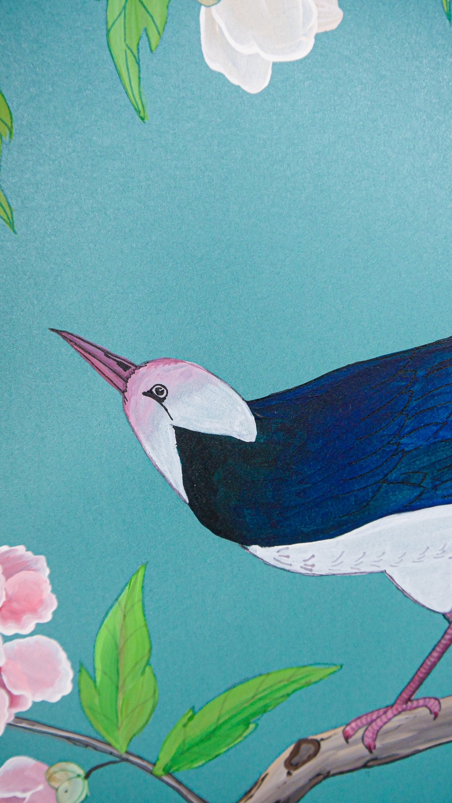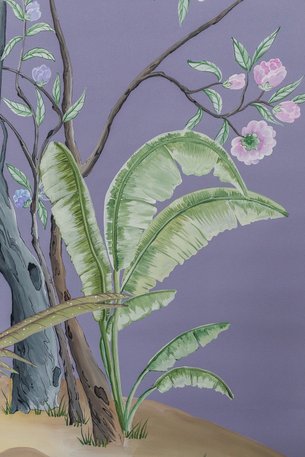 Pflanzen und Vögel von Nassau/Bahamas, inspiriert von einem Original aus dem 18ten Jahrhundert. Ein Set aus drei Tapetenbahnen.
