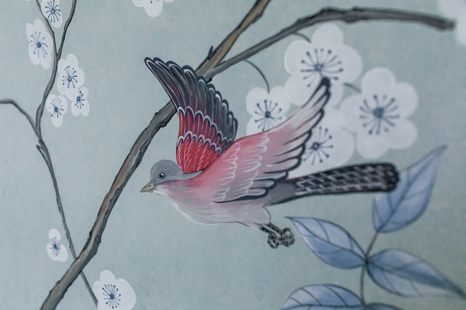 Pflanzen und Vögel von Nassau/Bahamas, inspiriert von einem Original aus dem 18ten Jahrhundert. Ein Set aus drei Tapetenbahnen.